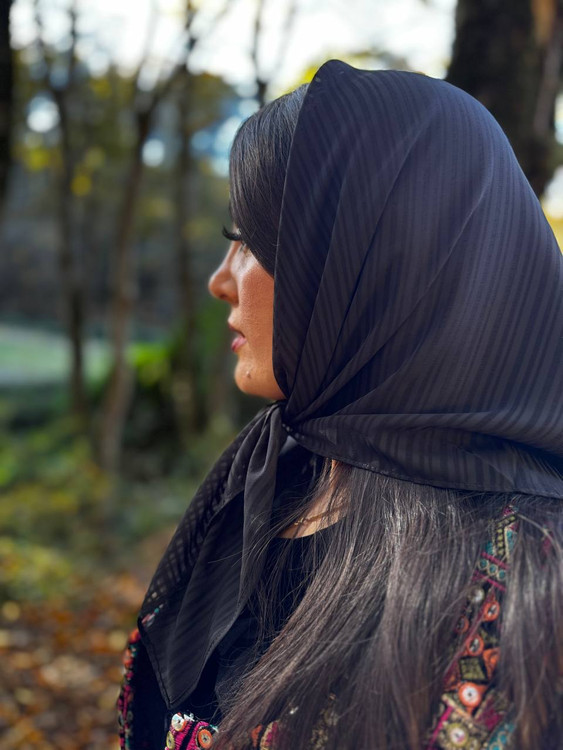 ✔️سایز روسری مدل نمونه، ۷۰ و ۱۰۰ سانتی است.