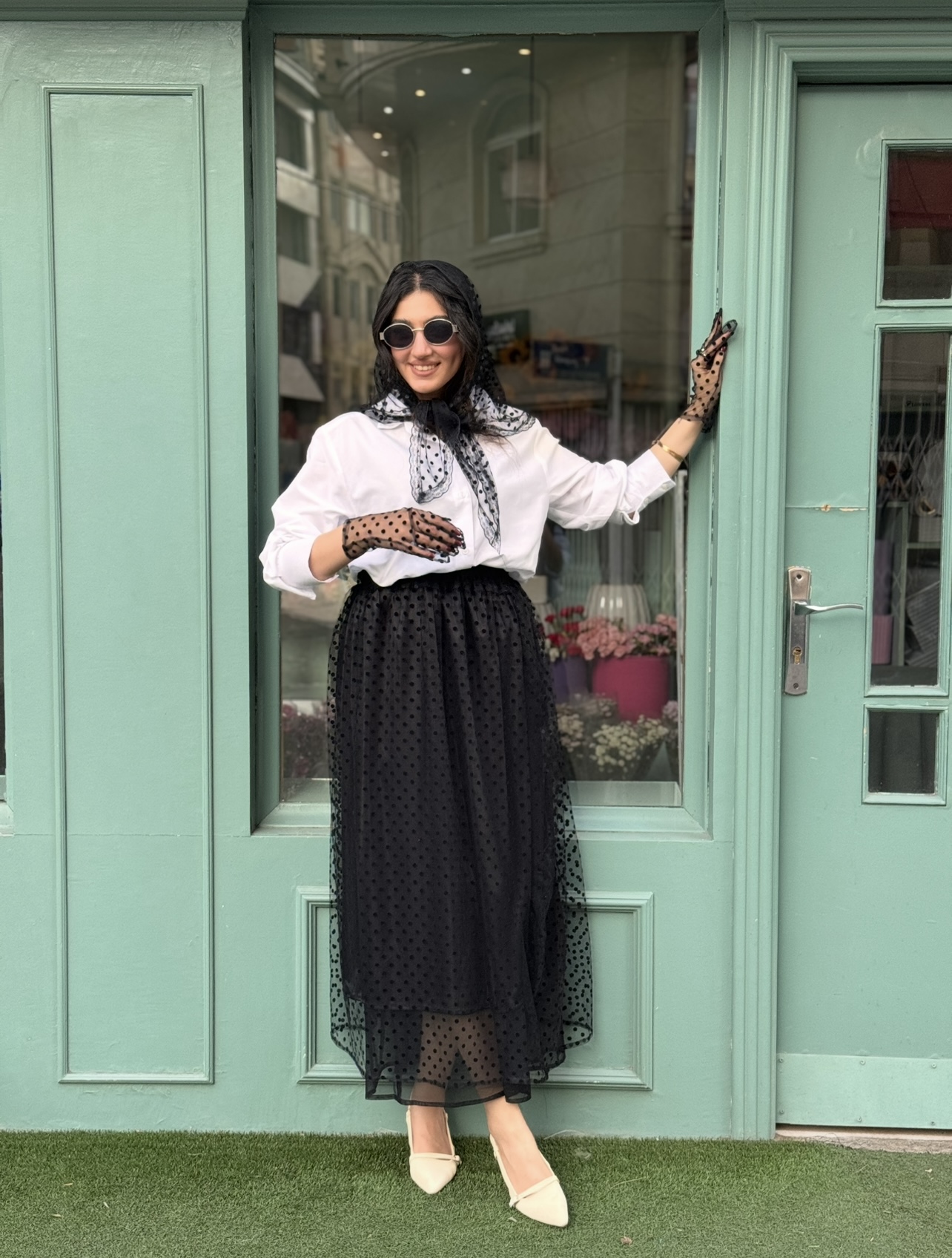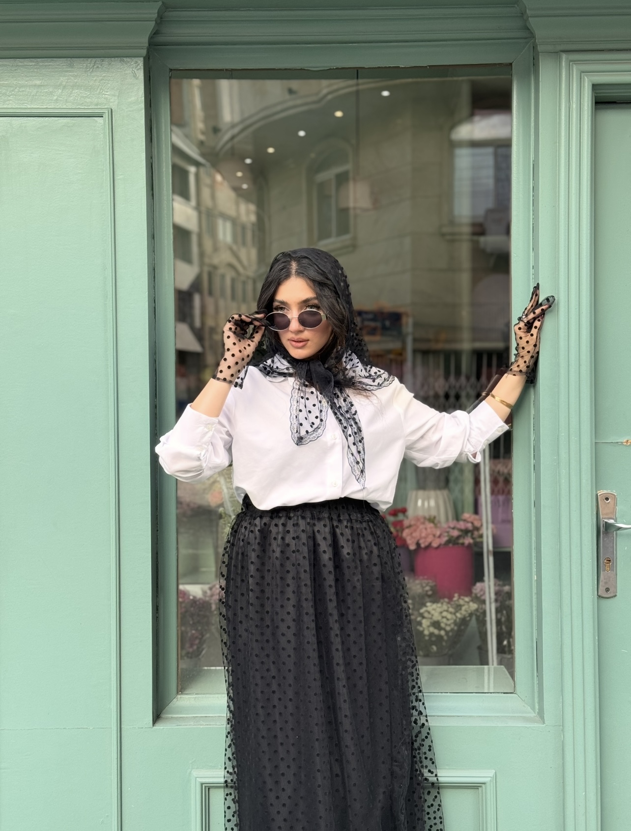 روسری تور خال خالی مشکی
