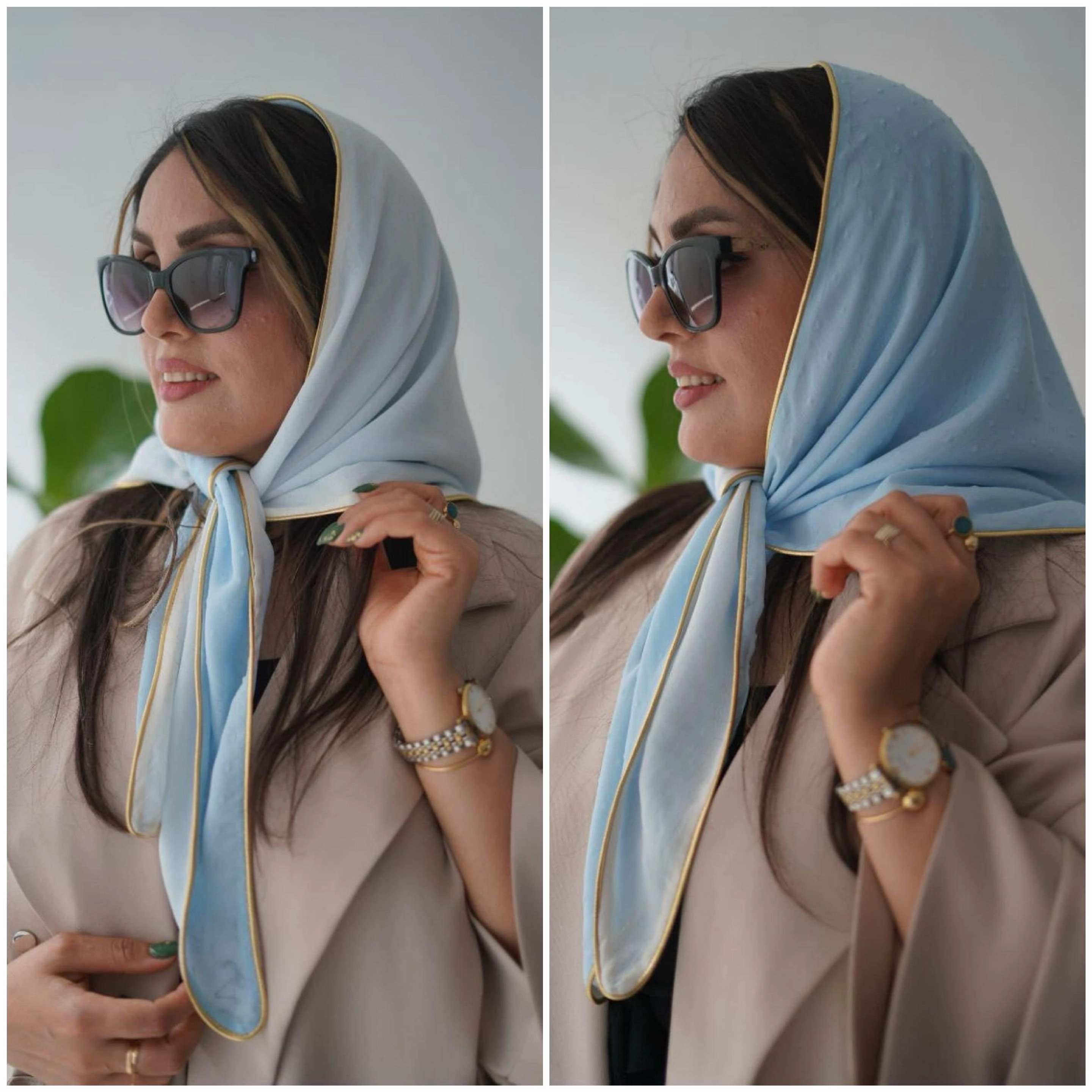✔️سایز روسری از ۷۵ تا ۱۱۰ قابل سفارش است.